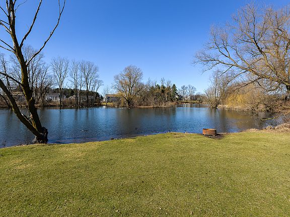 This impressive 4 bed/3.5 bath Hartman Farms home sits on a breathtaking lot that backs directly to a tranquil pond, providing you with a daily invitation to experience the soothing presence of nature. Step inside and find a warm and airy atmosphere in the 2-story foyer featuring low maintenance Mannington LVP that flows throughout the first floor. The soaring 2-story great room is centered around a gas fireplace and offers magnificent pond views through the double stacked windows which flood the home with natural light. The gourmet kitchen is a chef's dream, with upgraded white cabinetry, a large island, granite countertops, SS appliances, and a walk-in pantry. The expansive, 22x16 no-maintenance Trex deck, offers the perfect vantage point for enjoying the serene pond vistas, with a pati patio below to extend your entertainment space. Formal dining is made easy with a butler's pantry for seamless hosting. Need some quiet time? Retreat to your first-floor primary suite complete with cathedral ceilings, walk-in closet, and luxurious ensuite bath featuring dual vanities, spa tub, and large walk-in twin shower. Upstairs, two spacious bedrooms connected by a Jack and Jill bath, alongside an additional bedroom with its own ensuite bath, provide ample space for family or guests. The possibilities are endless in the nine-foot ceiling walkout basement, rough plumbed for a full bath and awaiting your customization. Additional conveniences include a well-equipped first-floor laundry with sink and built-in bench, a whole home generator, and a generous, side entry 3-car attached garage.
