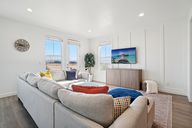 Open-concept designLarge islandSpacious kitchenAbundant cabinetrySleek metal banisterNatural lightQuartz countertops