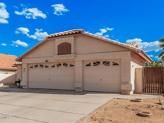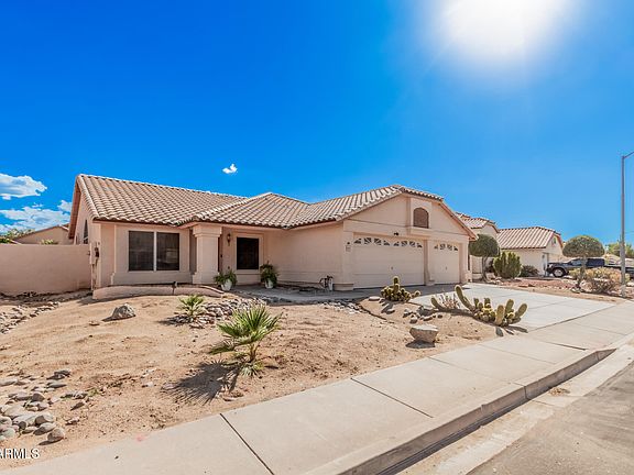 A rare find! Presenting this fabulous single-level home that welcomes you w/a 3-car garage, RV gate, & low-care desert landscape. Inside, discover a combined living/dining room, flexible den w/double doors, & a desirable great room. Highlights include vaulted ceilings, a blend of tile & carpet flooring, & abundant natural light. Open-concept kitchen comes w/track lighting, plenty of honey oak cabinetry, built-in appliances, a center island w/a breakfast bar, & a lovely bay window in the breakfast nook. Double doors lead to the airy main bedroom, offering wood-look floors, a sitting area, a walk-in closet, & a private ensuite w/dual sinks. W/its covered patio, the spacious backyard is ideal for hosting fun gatherings or simply unwinding. Don't let this incredible gem slip by!