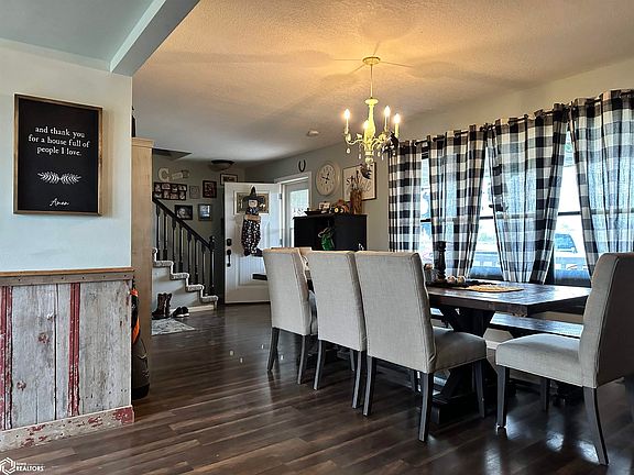 If you've been looking for a nice family home with plenty of room for entertaining, land for some livestock or pasture ground, with privacy that only country living offers - look no further! Located between Chariton and Knoxville on Highway 14 with 7.22 acres is this 5 bedroom home with so much to offer. The main floor offers formal dining room, informal dining area, kitchen with breakfast bar and stainless appliances, a half bathroom, family room and large living room with wood burning fireplace. Upstairs are 3 bedrooms and a full bathroom. The basement is finished with two more bedrooms with egress windows, a 3/4 bathroom and laundry room. The front of the home features a fantastic covered porch while the back of the home has a deck for more private entertaining and enjoying the sunrise. Several areas of pasture are fenced for rotating livestock with multiple sheds for extra storage needs. A newer detached 24'x30' garage offers 2-3 car storage.