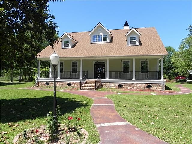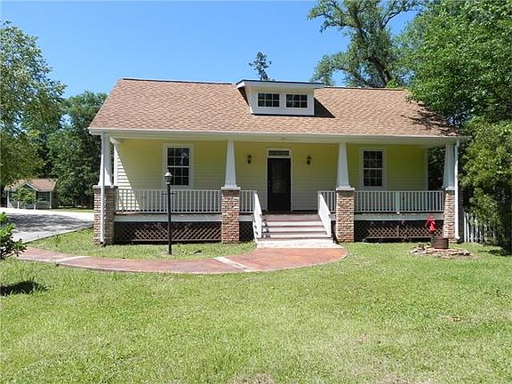Private 3 acre estate on a small bayou that leads to Bayou Liberty. This stunning property features large concrete constructed home with 9" exterior walls, private park like grounds, workshop and 1400 sq ft guest cottage w/ bedroom and full bathroom. Main house features soaring high ceilings, wood floors, master suite downstairs, sun room, huge custom kitchen and built-ins. Each bedroom has a private bath!