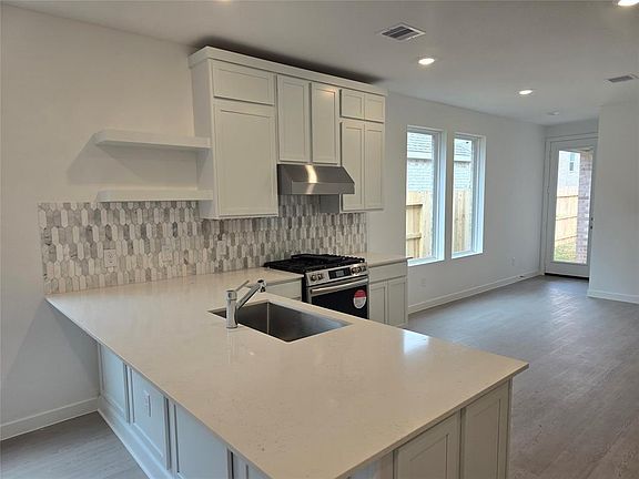 NEW Village Builders Avante Collection "Addison" Plan with Elevation "B" in Beautiful Pelly Place at Baytown Crossing! This new four-bedroom home showcases a modern layout contained to a convenient single level. An open-concept floorplan with access to a covered patio promotes effortless entertaining and multitasking. Three secondary bedrooms can be found at the back of the home, and the luxurious owner’s suite is tucked away to the side for enhanced comfort and privacy, complete with an en-suite bathroom and generous walk-in closet.