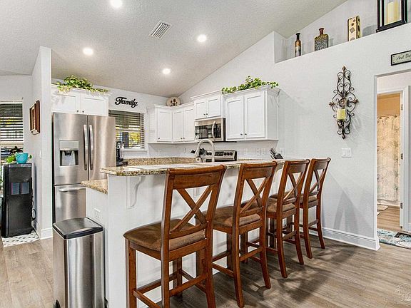 Welcome to your dream home, in Willow Creek plantation! This beautiful, spacious 3 bedroom 2 bathroom split floor plan home sits on a raised large corner lot. The kitchen with white cabinets, granite countertops and breakfast bar is open to the spacious great room with vaulted ceilings. LVP throughout main living area. The master bedroom has a walk-in closet and tray ceiling. Master bath, has a bathtub and a separate shower. The fenced back yard is a private oasis inviting you to relax in the state of the art inground saltwater pool with waterfall feature and travertine deck. Barbecue under the covered gazebo/patio. The laundry room has been updated with new cabinets. Willow Creek Plantation offers a community pool and playground.