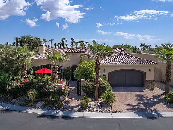 COMING SOON! Welcome to the gem of south La Quinta in the highly desired gated neighborhood of Santerra. This immaculate home is the one you have been waiting for and no expense has been spared. Enter inside your private courtyard to enjoy the outdoor oasis with west-facing mountain views, your own covered loggia, sliding glass doors opening to the living room, pavers, & lush landscape. Once inside you will love the open floor plan and all the upgrades including tile flooring, custom built-ins, stunning light fixtures, baseboards, window coverings & more. The kitchen is chef's dream with SS appliances, a gas cooktop, granite slab, stunning backsplash, plenty of seating, and a large pantry. The private backyard is the perfect spot to enjoy the morning sun and marvel at the lush landscape. The low density of homes and low HOA dues of $219 a month make this neighborhood highly desirable. Close proximity to world-class golf courses, Lake Cahuilla recreation, & so much more. The garage is air conditioned with built in storage, and has epoxy flooring An inventory list of included items is attached. This home has been meticulously maintained and has been pre-inspected before coming on the market. A copy of the home inspection report is available to reinforce its impeccable condition. You don't want to miss out on this one as it checks all the boxes. Inquire for more details and set up a private showing today.