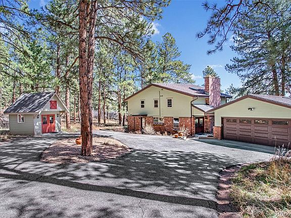 House sold before going on the market.  Entered into MLS for tracking and comparable sales purposes only. Extremely rare oversized property on the golf course in Perry Park! This completely renovated custom 2 story home is perfectly nestled on a 1.63 wooded acre lot backing to the 16th tee box of the private Perry Park Country Club golf course. This gorgeous home features stunning views of the golf course and red rock formations from nearly every window. You are sure to enjoy the hand troweled wall and knotty alder cabinetry throughout with 3 bedrooms, 3 bathrooms, a spacious 2 car garage with an attached workshop, a detached golf cart/motorcycle garage and a storage shed that is the perfect size to fit all your toys. The updated gourmet kitchen has stainless steel appliances, slab granite countertops, wood floors and plenty of knotty alder cabinet space. The relaxing master retreat showcases vaulted ceilings, a relaxing gas fireplace and access to the newer trex wrap around deck where you are sure to enjoy the views of the golf course and towering red rocks. Relax on the elevated deck or enormous ground level patio with stunning views of the towering pines, golf course, red rock formations and not a single neighbor in sight. Enjoy the serenity of mountain living while maintaining an easy 35 minute commute to either the Denver Tech Center or northern Colorado Springs. Extensive renovations have been performed over the past 11 years including all new windows, metal roof, siding, furnace, A/C, bathrooms, kitchen and more.
