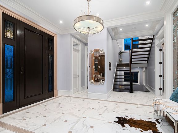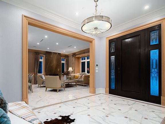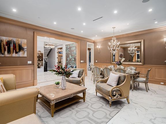 High ceilingsItalian marble flooringWhite oak millworkEuropean mosaic wall decorGourmet kitchen with islandWok kitchenHigh-end appliances