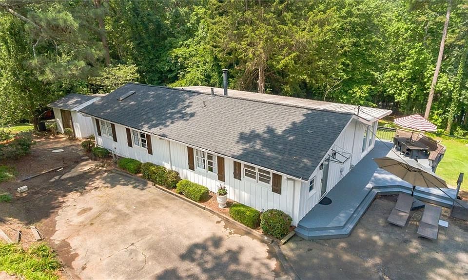 Wonderful Lake Lanier home on 1/2 acre lot located minutes to GA400. Sitting on a beautiful lot, off Highway 369, near Six Mile Creek bridge, this 3bed/2bath ranch home has NO HOA. Gently sloped walk to covered single slip dock, recently updated. Wrap around deck with wall of windows on back of home provides wonderful year round lake views. New windows on front of home. Roof replaced in 2021 w/40 year architectural shingles. Replaced hot water heater in 2021, newer furnace, new fans throughout. New lighting. New quartz counters, new SS farm sink, new Bosch dishwasher. 3/4" site finished hardwood floors in living areas. Stone fireplace in Great Room. Very open floorplan offers options for office space, play space, whatever your family needs. Oversized master bedroom has sitting room with access to back deck. Outdoor shed provides storage space. Dock has electricity. Well on property, perfect for outdoor watering. Plenty of play space & garden space. Large lot offers space for expansion of home, or addition of garage or workshop. Lots of possibilities.