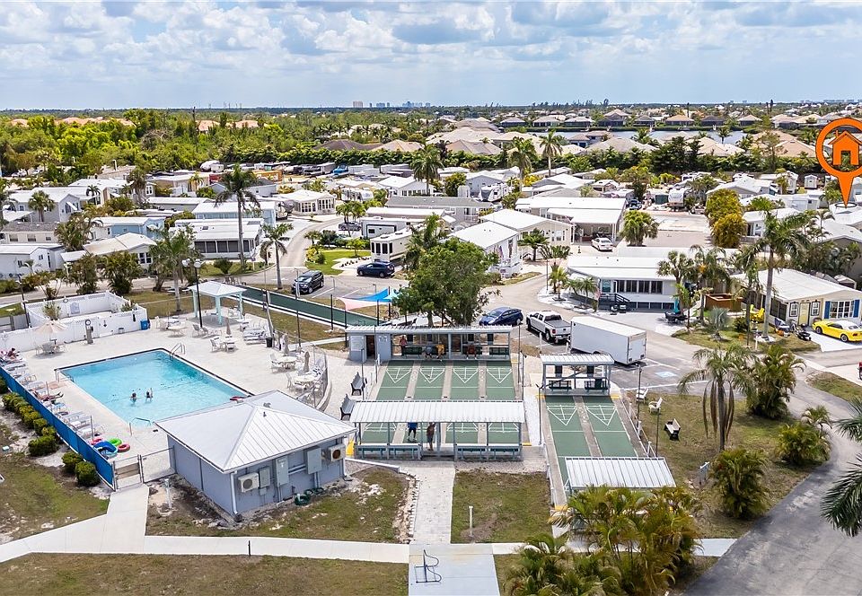 Just minutes from the Gulf, this charming home lets you live the Florida dream without the upkeep! Nestled inside a gated, resort-style community, you’ll enjoy a long list of amenities — including a community dock with GULF ACCESS, a sparkling pool and spa, clubhouse, tennis, bocce, and shuffleboard, and so much more. The location is unbeatable — you can literally stroll to Publix, Amped Fitness, CVS, Dunkin’, sushi, pizza, Mexican, and more. Whether you’re grabbing your morning coffee, running errands, or heading out for dinner, everything you need is right at your doorstep. Inside, vaulted ceilings fill the kitchen and living area with natural light, creating a bright, open feel. The home also includes a covered carport with space for two cars, plus a private storage shed for your beach gear or bikes. It’s being sold turnkey, so all you need to bring is your suitcase — everything else is ready for you. The interior is prepped with subflooring, giving you the chance to choose your own flooring and finishes to make it completely your own. Whether you’re looking for a lock-and-leave seasonal retreat or a low-maintenance full-time escape, this home offers an incredible opportunity to enjoy one of Fort Myers’ most affordable and amenity-rich 55+ boating communities — where every day feels like vacation.