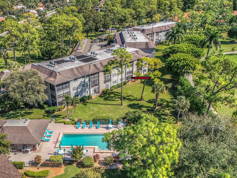 Wonderful south central Naples location at Augusta Court. This complex sits back off of the road and overlooks green space from the lanai. The carport and covered storage are between the condo and the road. This 2 bedroom condo is beautifully updated with new kitchen, updated baths, wood look tile flooring, raised kitchen ceiling, and granite counters. Freshly painted with soft beachy colors. Another great feature is hurricane windows. Super convenient first floor location (did not flood) with easy access from covered parking to front door. Low maintenance fees with nice amenities in a friendly, residential complex.