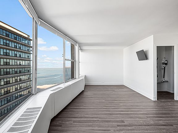 Spacious, light-filled studio with beautiful lake views and a highly versatile open layout that allows for defined living and sleeping areas. Updated kitchen with white cabinetry and wrap around counter and bar stools. Generously sized walk-in closet. The building features a completely reconstructed rooftop deck with sweeping lake and beach views, a refurbished solarium, a renovated lobby, and 24-hour doorman service. Residents also enjoy a heated garage (valet or self-park available for an additional cost) and a fenced outdoor patio with gas grills, plus direct access to bike trails and Kathy Osterman Beach, just steps from the building. Ideally located just off Lake Shore Drive with excellent public transit access, including CTA bus routes 136, 147, and 151, and an easy walk to the Red Line. Conveniently close to Whole Foods, Jewel, Mariano's, LA Fitness, and Loyola University. Rent includes heat, water, cable TV, WiFi, scavenger, and doorman service. Landlord requires 680+ credit and prefers a 13 or 14 month lease. Renter's insurance required.