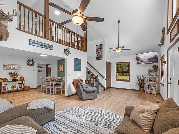 Come check out the updates on this beautiful 5.896 acre property. This 4 bedroom, 3 bath home provides the perfect blend of country but still close to town. Recently built (less than a year) 36x60 detached garage is a mans cave dream. Updates included gas range, refrigerator, granite countertops, stamped concrete patio, furnace, air conditioner, water heater, new front porch and painted roof. The large bar seating is ideal for a large family but if you are a family that likes to eat at the table, there is a large space for the dining room table. The laundry room is one the main level so you do not need to go to hike up and down multiple flights of stairs. The full basement offers ample room for friends and family. This home is ready for new owners and promise it will be everything you have been looking for and more.