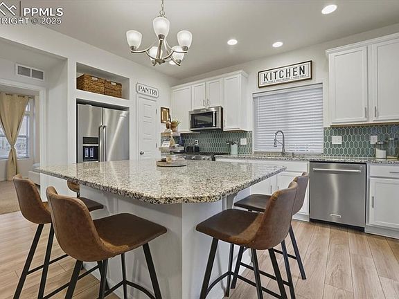 Discover this beautifully maintained, modern home that radiates pride of ownership from the moment you arrive. Featuring three spacious bedrooms and three bathrooms, this residence offers an ideal blend of comfort, style, and functionality. The gourmet kitchen is the heart of the home—complete with a large granite island that flows seamlessly into the open living room, perfect for entertaining or everyday living. The primary bedroom is conveniently located on the main level and includes a private, attached bathroom. A separate guest bathroom is also located on the main floor for added convenience. Upstairs, you’ll find two generously sized bedrooms, a shared full bathroom, and a versatile office area—great for remote work, homework, or creative space. The lower level features a flexible bonus room currently used as a home gym, offering endless possibilities to suit your lifestyle. Step outside to enjoy a beautiful raised deck and inviting backyard patio, ideal for relaxing, grilling, or hosting gatherings. Located near the award-winning K–12 Banning Lewis Ranch Prep Academy, this community offers exceptional amenities including a clubhouse with a 24-hour fitness center, outdoor Jr. Olympic heated pool, splash park, pickleball courts, over 60 acres of parks and hiking trails, plus trash removal, recycling, snow removal, and more!