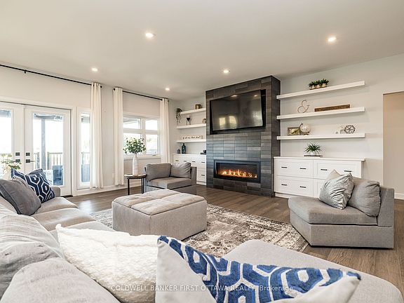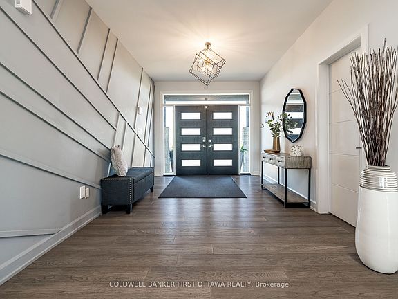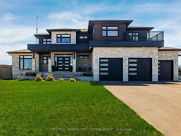 Discover this exceptional 7-bedroom luxury residence, designed for multi-generational living and entrepreneurial opportunity. Featuring two distinct living spaces each with its own private entrance and garage the property is ideal for extended family, rental income, or professional use. Uniquely approved for business, the zoning allows on-site client parking, a rare advantage for wellness services, professionals, or a variety of industries in the Stittsville/Kanata South area. Set on 1.25 acres, the fully fenced grounds include a saltwater pool, pool house, and a 75x75 ft side yard ready for a multi-sport pad. With a 100-amp electrical panel for lighting and a water line for winter ice, the space is perfect for hockey, basketball, or pickleball. Inside the main home, an open-concept layout features hardwood flooring and premium finishes. The chefs kitchen offers quartz countertops, custom cabinetry, a walk-in pantry, and oversized island, while the expansive covered deck extends entertaining outdoors. Upstairs, the primary suite includes dual walk-in closets, a private balcony, and lounge/office. Two additional bedrooms with ensuites and walk-ins, plus a loft and laundry, complete this level. The finished basement adds a built-in hockey rink (which can be converted to rec room), gym, and large office, with potential for extra bedrooms or entertaining space.The second home offers a full kitchen and living room, private back porch, powder room, main-floor bedroom with ensuite, its own garage, and a finished basement that connects to the main residence. There is even potential to develop a third dwelling ideal for in-laws, rental, or business use. Additional highlights include a state-of-the-art air purification system and Generac generator. Close to top schools, shopping, and trails, this property offers a rare chance to live, work, and play in one of Ottawas most sought-after communities.