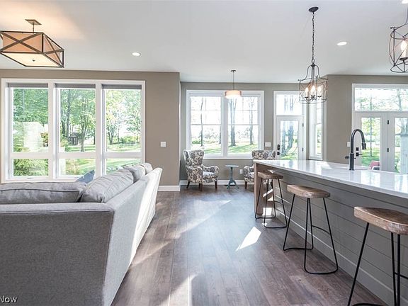 RARE NEWLY BUILT (2018) CUSTOM DESIGNED & QUALITY CONSTRUCTED 4 Bedroom 4.5 BATH Home w/OPEN floor plan & UPGRADED Features throughout incl Gourmet Kitchen, Deluxe Owner Suite, Jack/Jill Bath and Ensuite, Fin Bsmt w/10 ft Ceilings & MORE situated on private .83 wooded lot in Brecksville Schools. Home has 2x6 framing, dual & zoned HVAC, 10 ft ceiling on main/lower levels, 1st flr 8 ft doors, rounded wall finish, Endless Hot Water +MORE! Charming elevation w/covered front porch, stone/vinyl shake exterior, lrg driveway & 3 car heated garage. Main living area w/Wall of Windows. Gourmet kitchen w/lrg ctr island w/seating, Quartz ctr, farm house sink, white cabinetry w/full extend-soft close drawers & coffee station w/pot filler, leather granite ctr w/subway tile, Stainless appliances w/5-burner range w/custom Hood w/exterior vent & convection oven. Kit opens to FR w/brick FP & Dining Rm. Den off Foyer w/ lrg window overlooking porch & Barn Door leads to built-in cubby area to garage. TALL