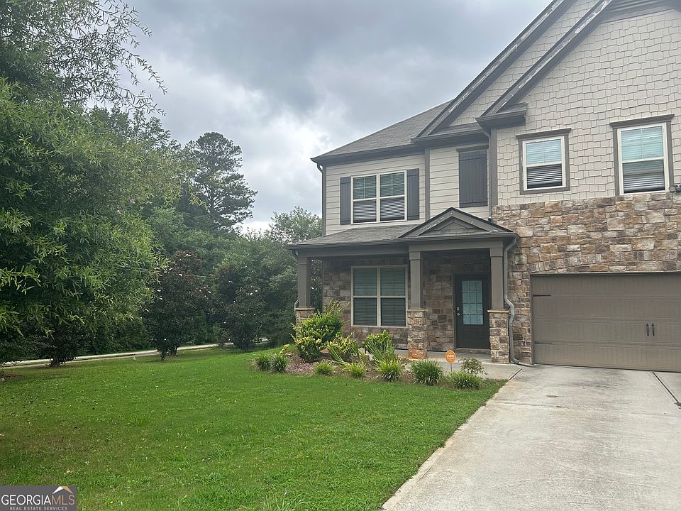 Corner home site, 2 story, 5 BD/4 BA/2 CAR garage conveniently located just mins from Intl Airport, I-85, I-285 & S Fulton Pkwy. Bedroom & Full Bath on main. Designer Kitchen with 36" Sarsaparilla cabinets, granite counter tops, tile backsplash, pendant lit island, Flex room w/trim. 5" wood looking LVP floors on main. Large Owners' Suite w/WIC & Deluxe Bath featuring separate 5' soaker tub & 5' chrome/glass shower plus dual cultured marble vanities. Upstairs Living Area.