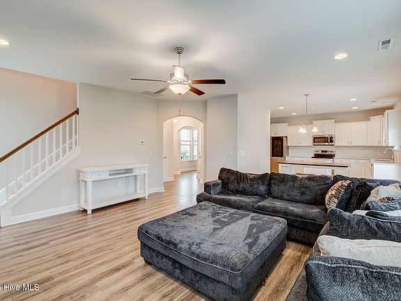 Built in 2022, this 2,269 sq ft coastal craftsman stuns with curb appeal and continues to impress inside with arched doorways, wide-open living space, and a kitchen that checks all the boxes — white cabinets, stainless appliances, granite counters, and a killer island.