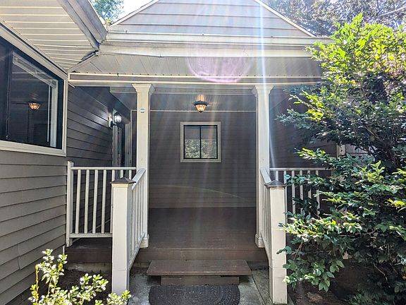 Stone fireplaceFenced backyardBack deckWelcoming front porchBay-windowed breakfast areaDouble vanity