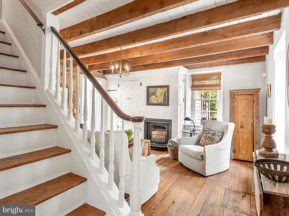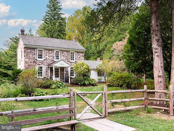 Welcome to 576 Baptist Church Road, a stunning piece of Chester County history built in 1850 and nestled on over 4 acres of bucolic property including ponds, a fenced-in area for dogs, an old springhouse, and both wooded and cleared areas. This lovely stone home has been beautifully updated, while still maintaining its original charm as seen in the exposed beams, built-ins, original hardwood floors, and multiple fireplaces. An old-world feel embraces you as you enter the home into the inviting living room flanked by a first-floor bedroom, both part of the original home. A sitting room off the front room is a sunlit space courtesy of two skylights with French Doors leading out to the patio with a lighted pergola overlooking the stunning backyard including two ponds and a wooded area. Off the sunroom is a gorgeous addition with a vaulted ceiling that boasts an open-concept kitchen and family room with access to both the rear and side of the home. The gorgeous kitchen offers a double farmhouse sink, stainless steel appliances, open shelving, and considerable counter and cabinet space. A large area for a table, where you could easily add an immense island, opens to a cozy family room with a gas fireplace where guests can mingle with the home chef. A full bathroom with a walk-in tile shower completes this floor. Upstairs find 2 bedrooms sharing a hall bath with a tub/shower combo and third-floor access is available in the smaller bedroom. This finished attic space once served as a playroom for the owner's young daughter, but could be used however you desire. The adjacent carriage house features a main floor area that could be a home office, crafting room, or private studio, and an upper level currently serving as the home gym and yoga area. Outside sits a long covered patio showcasing a water feature, stone wall, and outdoor stone fireplace perfect for fall evenings outdoors. Known as Meadowbloom, the previous owner hosted garden tours and small weddings, with locals eager to view the beautiful grounds. Renowned biophilic architect Helena Van Villet designed plans for expanding the home while remaining connected to the exterior beauty, and these plans are included with the home sale. This type of property does not often come to the market so do not miss your opportunity to own a home that seamlessly blends old world charm with modern day updates! Please note that the square footage is estimated and includes the two floors in the carriage house.