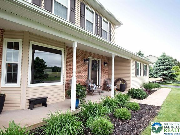 This PRISTINE, 4 bedroom Colonial Farmhouse style home boasts of PRIDE OF OWNERSHIP, situated on a corner 1 acre lot in the Pen Argyl SD! Just pack your bags and enjoy all the amenities of this lovely, luxury home as you enter from the cozy, covered front porch into the very spacious 1st level. The modern, remodeled kitchen is a Chef's delight, featuring newer appliances, a huge double pantry, recessed and pendant lighting, and an extra breakfast bar. The Open Concept flows into the family room with vaulted ceilings on one side and a formal dining room on the other, a perfect spacious area for entertaining! Convenient 1st level laundry room is combined with the remodeled Powder Room. The 2nd level features a comfortable Primary Ensuite, 3 other bedrooms, and a full hallway bath! Need more living space or a "man cave", retreat to the lower level, carpeted finished area with full projection area and surround sound! Remodeled kitchen and baths, newer replacement windows, sliding door, HVAC, 2 spacious decks with an above ground pool, and not 1, not 2, but 4 garages, outdoor speakers, pull down attic, and a large shed are some of the many amenities! Enjoy the beautiful views of the hills and valley and the lovely landscaping, not only from the living room window, but also as you enjoy your outdoor oasis from your decks! A country GEM, close to Rts. 33, 115, & 191 for an easy commute..a private, serene setting, yet close enough to enjoy Lehigh Valley shops and local restaurants!