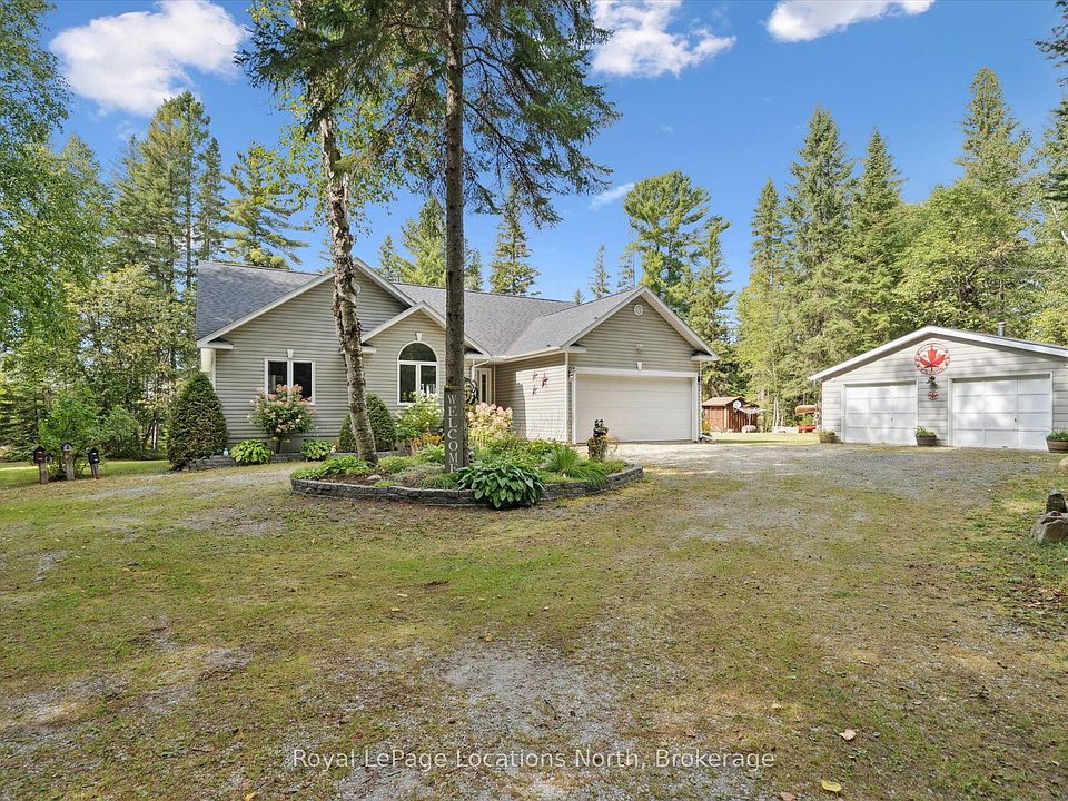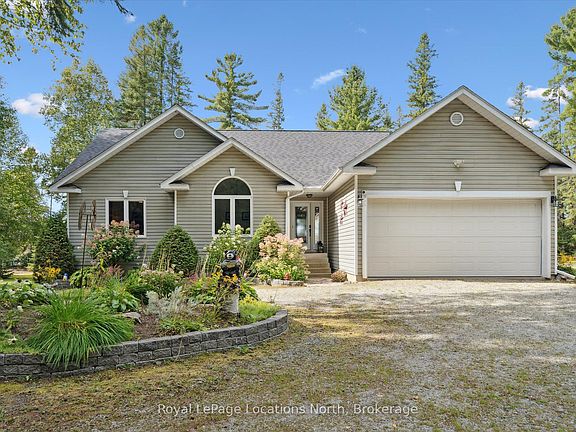 ***Welcome to the Lake*** Fully Turnkey, fully finished and very private. This exceptional property features almost 3,000 sq ft of finished living space with 3 bedroom plus a den/office, 2 bathrooms. This lakefront home sits on Big Clam Lake. It's set on a 3 acre lot with 300 feet of premium west-facing waterfront. This property is move-in ready, impeccably furnished, professionally decorated and meticulously well cared for. The home, built in 2000, features an ICF (Insulated Concrete Forms) foundation, HRV (Heat Recovery Ventilator), a 40' dock, a 20 X 20' attached garage, plus a 24' X 24' second garage for the toys and tools. Inside the home, the den has cathedral ceilings while the large primary bedroom boasts a large walk-in closet and ensuite with a soaker style jet tub, double sinks, quartz counters & separate shower. The modern kitchen with its built-in appliances, Cambria quartz counters, breakfast bar and brick backsplash is well laid out for any type of cook or entertainer. The property also features a Napoleon wood burning fireplace with stone surround and hearth, a generator and forced air propane furnace. This property ensures comfort and peace of mind year-round. The main floor walks out to a generous deck complete with a solarium allowing for spectacular views of the lake especially at sunset. The lower level recreation room provides ample entertaining space. The lower level bedroom has tons of closet space and accommodates two queen sized beds. Just 30 minutes to Huntsville and a short drive into Algonquin Park, this area is great for ATV and Snowmobile enthusiasts. This property has a shallow hard packed sand beach for safe swimming for all ages. Do not miss the opportunity to own this one-of-a-kind, incredibly private gem on Big Clam Lake.