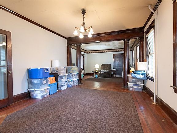 Imagine the magnificence of this property from the gilded age with its 3/4 wainscotted walls in the dining area and 1/3 wall wainscotting in the Den area. Majestic columns and full light glass, french doors in the double parlor divide the space elegantly. Original wood trim and wood doors add to the elegance of this home. Hardwood and pine floors will sparkle when refinished. 2nd floor rental unit and lower level in-law unit offer additional income or extra space for your family if needed. The massive fenced in yard is perfect for pets and children to play. Many important updates have already been done leaving only cosmetic work to do to make this home our own. Roof is under 1 year and guaranteed for 35 years. Electric has been updated and house is fully insulated. Second floor and Lower Level in-law units both have new vinyl replacement windows. First floor still has wood frame windows. Heating system is 8 years old and Hot water tank is only five years old. Bathrooms were updated in the past several years. Wrap around deck had stairs replaced last year. Two Car Garage plus shed are super convenient for lawn equipment, storage or keeping your car warm and free of snow in winter. Long term, on time paying tenants help to offset the mortgage. Schedule your showing today if you're looking for a property with the opportunity to add value that will pay dividends for years to come!