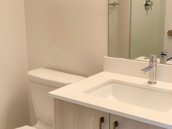 Bright and Spacious 1 bedroom with east view of Toronto Skyline. Tasteful finishes include 9 foot ceiling, premium laminate flooring throughout, quartz kitchen countertop, tiled backsplash, integrated appliances. Enjoy state of the art amenities including an outdoor pool, large gym, and party room. Steps to Farm Boy, Dollarama, STACKT Market, The Well, public transportation, restaurants, and more.