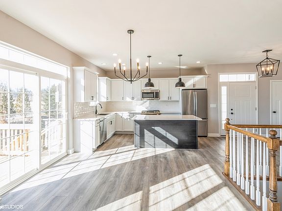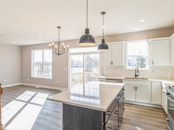 Welcome to The Villas at Madison Lane, a stunning new construction community perfectly situated in Elgin! This highly sought-after Ranch Duplex with an English Basement features 3 bedrooms, 3 full bathrooms, and 1,600 square feet of beautifully designed, open-concept living space. Step inside to be greeted by an abundance of natural light and a thoughtfully designed living area with soaring 9' ceilings and luxury vinyl plank flooring throughout the main level. The heart of the home, the kitchen, boasts GE stainless steel appliances, sleek quartz countertops, a stylish tiled backsplash, and 36" soft-close cabinets with crown molding. The large eat-in island seamlessly connects to the family room, making it perfect for entertaining or enjoying everyday moments. The spacious primary suite offers a serene retreat, complete with a large walk-in closet and a spa-like en-suite bathroom featuring upgraded finishes, 12x24 ceramic tile, a double vanity with cultured marble countertops, and premium Moen fixtures / black accent finishes. A versatile carpeted secondary bedroom, a full hall bathroom, and a generously-sized laundry/mudroom round out the main level. Step outside onto the spacious deck, an ideal spot to unwind and enjoy views of the backyard. The English/Lookout basement is bathed in sunlight and offers incredible flexibility with a third carpeted bedroom, a full bathroom, and a bonus living area perfect for a home gym, recreation room, or additional entertaining space. Located just minutes from major expressways, shopping, dining, grocery stores, and more, this property combines convenience with modern luxury. Don't miss this incredible opportunity-schedule your tour today!