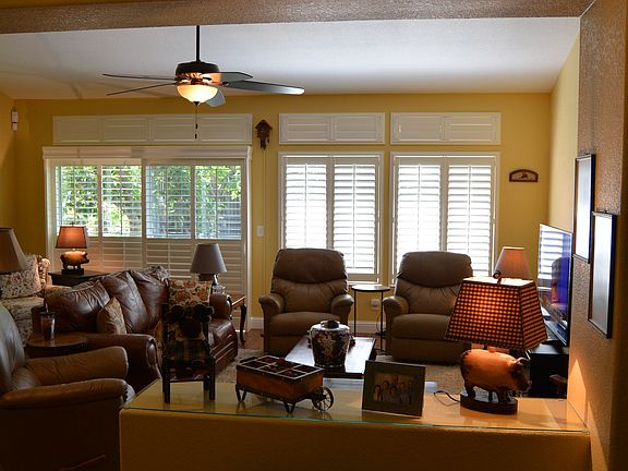 Picture perfect 4 bedroom home in sought after River Run location, Immaculate landscaping front and back, backyard is an oasis, shade trees, Navel oranges, lemon, apricot, Bing cherries, lime, kumquat, pavestone patio, privacy. House has a great layout w/large windows, lots of natural light, vaulted ceilings, plantation shutters, laminate flooring, ceiling fans in all bedrooms, 2 gas fireplaces, large master suite w/patio access, big walk in closet, large lot, 3 car garage.