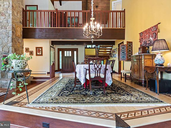 Unique Contemporary home with amazing views situated on17.49 +/- acres adjoining George Washington National Forest. This one of a kind, four story home was inspired by Frank Lloyd Wright, the famous creator of “organic architecture". Beautiful custom stairs and Anderson double pane windows. Open concept great room and dining room boasts vaulted wood ceilings, hardwood inlay floors, and a 60 ft stone chimney. The spacious kitchen offers a large island, granite countertops, recessed lighting, and stainless steel appliances. Main level primary suite provides a soaking tub, double sinks, and a sitting room. On the second level you will find two additional bedrooms, two full bathrooms, and an office. There is also a carpeted office on the third level which offers a propane stove and built-in bookcases. The lower level would make a great in-law suite offering a Den with wood burning fireplace, a bonus room with sink and cooktop, a rec room/fourth bedroom, and another full bathroom. Outside you will find a huge deck, a treehouse, a gazebo, 2 storage sheds, and a 30x30 fenced-in pet area. With two parcels totaling 17.49 +/- acres and George Washington National Forest as your neighbor, there is no shortage of nature, wildlife, or privacy! Don't miss the opportunity to own this serene mountain oasis! Schedule your tour today!