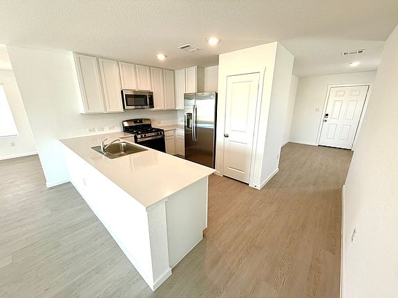 Welcome to 576 Paul Canyon, a newly built two-story home in one of San Antonio's growing subdivisions. This spacious property features four bedrooms and two and a half bathrooms, with all bedrooms located upstairs for added privacy. A versatile upstairs loft offers the perfect space for a second living area, home office, or playroom. Inside, you'll enjoy brand-new flooring and fresh paint throughout, with cozy carpet in all bedrooms and upstairs spaces. The modern open kitchen is designed for everyday living and entertaining, complete with stainless steel appliancesrefrigerator, stove/oven, built-in microwave, dishwasherplus a washer and dryer included for added convenience. Central air and heat ensure year-round comfort, while the primary suite boasts a walk-in closet for ample storage. Step outside to a large backyard, perfect for gatherings, outdoor activities, or relaxation. A two-car garage adds secure parking and extra storage space. With its thoughtful layout and modern finishes, this home is move-in ready and waiting for you in a vibrant San Antonio neighborhood. Thank you!