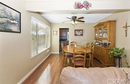 Wow!! You will love this Beautiful charming home. This 4-bedroom, 2-bathroom home has a 2-car attached garage, giving you over 1,500 sq. ft. of spacious open floor plan with laminate wood flooring and tile throughout. The kitchen and bathrooms have been updated. Newer dual pane vinyl windows and 6-ceiling fans in the house. 3-bedrooms have mirrored closet doors. Imagine cuddling up to a cozy fireplace with a good book. The home is located on a small quiet street with room on the side for your toys, trailer or maybe an RV. Conveniently close to downtown Upland and not too far from freeway access.