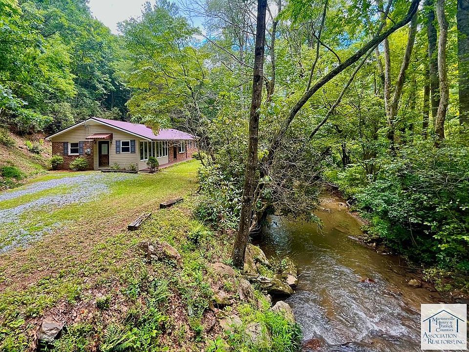 Are you looking for a place of your own, nestled in the woods, right by the water, and with the peaceful sounds of nature's beauty all around you? Stop looking because 576 Poorhouse Creek Road is your new home, or home away from home! Located in Stuart, VA, this 1/2 acre property sits right off the creek and is a nature lover's dream come true! Head across the bridge and over the creek, listening to the babbling of the creek below, and be struck by the beautiful rhododendrons that grace its shores in spring and summer. The home, itself, features apx. 1,537 finished sq. ft., including a formal living room with gas fireplace, a primary bedroom suite with a shower bath, two additional bedrooms, a second hall bath with tub/shower, kitchen, laundry room, and a spacious family/sun room that overlooks the yard and river beyond. Once the carport, the owner enclosed it and made this a truly peaceful space to read, relax, crank the windows...and drift away. In addition to this, the owner has made many other improvements over the years, including: vinyl siding; metal roof replacement; drainage improvements, double-pane windows; laminate floors; bath updates, and fresh paint! Several electric wall heaters, the fridge, dishwasher, oven hood, and hot water heater have all, too, recently been replaced. Commuter-friendly! 30 min. to Martinsville, 60 to Winston Salem, 1.5 hr. to Roanoke/Greensboro! We look forward to seeing you at 576 Poorhouse Creek Road, your creekside retreat!