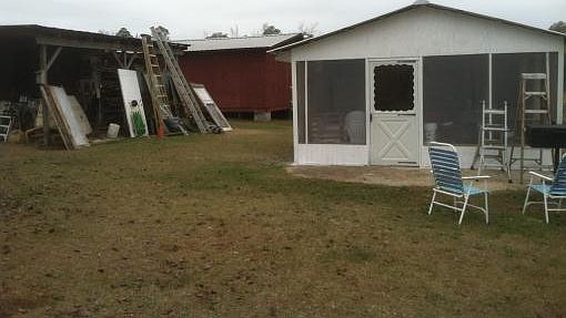Spacious 3 BR/2 BA , open floor plan for living area, lots of kitchen cabinets, large laundry room with storage cabinets, washer, dryer, upright freezer, & big screen TV to remain with property, sunroom off of dining room used as office not include with sq. ft. This property has a lot of extras to offer on this approx. 1 acre, a workshop with 2 AC units (no heat), cookhouse with screen porch for pool and 300 sq.ft. +/- extra building to use as craft/office fully insulated with a wall heat/cool unit.Has ramp for loading. Mildred Owens 334-464-2121