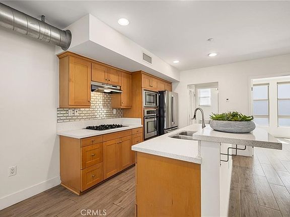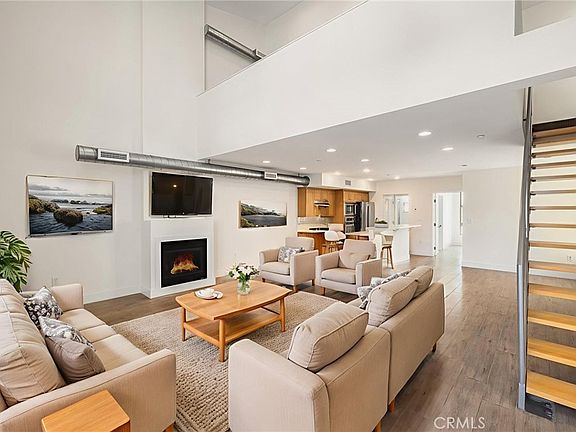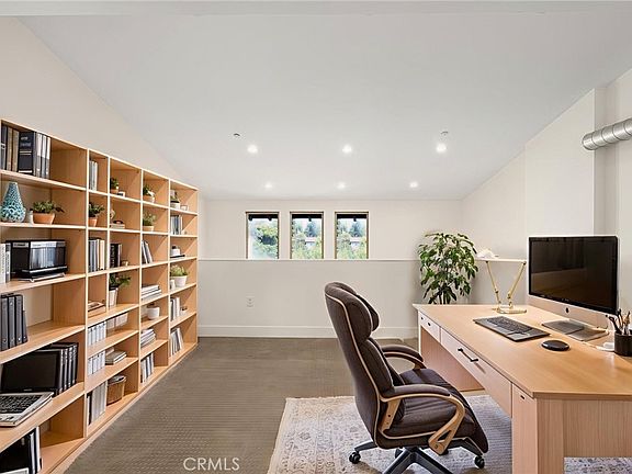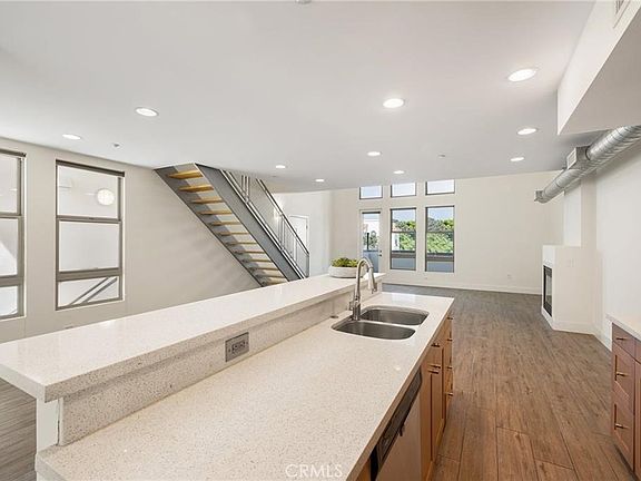 office space approximately 586 square feet with it's on bathroom and AC/furnace. Ground floor. Head up the stairs to the impeccable 2 stories with 2 full bathrooms, master has walk in shower and tub! Gorgeous wood plank beechwood style tile that looks just like wood. Dramatic vaulted ceilings with great use of wood/iron post retention stairs. Not a speck of wood anywhere as the entire frames! This complex won the architectural building award for a great new innovative design the year that they were built for the state of California. The bathroom and kitchen counter tops have been replaced with a gorgeous quartz counter for a smooth and sleek finish for a very contemporary look. Well designed with a very rich wool blend dense fiber carpet that is a perfect compliment to our modern yet cozy townhome complete with a front balcony and a back balcony. There is a great cross breeze and our live/work space is located just across the way from the Brea plunge community swimming pool and park! Walk to all that downtown Brea has to offer. Never have to leave home! Our complex is pet friendly and we even have our own dog park/running area! Enjoy a family B B Q at the community B B Q corner and or just enjoy being at your super luxurious modern meets comfort townhome style home with it's own downstairs office that you could use your own and or rent out to pay a portion of your mortgage. Great location to walk to the downtown! Relax at home as the South Brea Lofts has lots of general parking, but our unit comes with a covered extra deep garage and a very deep covered car port. You and or quests are also allowed to park on site! Very modern approach to living. Brea Olinda High School is just up the street, and the private Catholic elementary school St. Angela's church and school are just across the street. Starbucks and Ralphs and Sprouts are just up the street. This community has everything to offer you and your family. We also have an up-stairs loft with its own closet that could easily be enclosed to make it a 3rd bedroom! Oversized water heater. Come on over! Owner just re-glazed the entire downstairs tile flooring. One in a million!