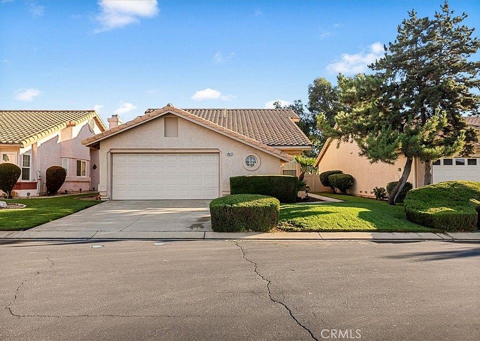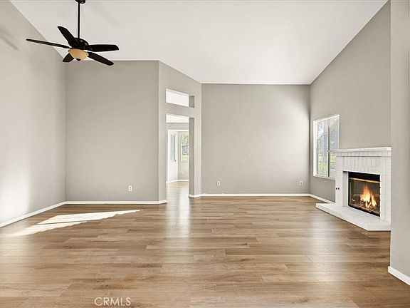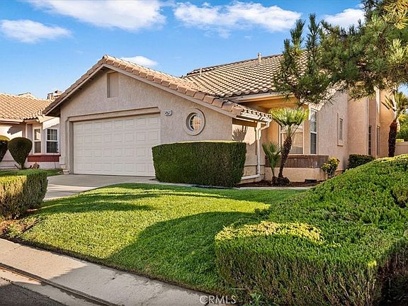 Located in the desirable Sun Lakes community, this move in ready 3 bed, 2 bath home sits on a prestigious 18 hole private golf course and offers an active adult lifestyle in a 55+ Community. It has resort style living. Features include high ceilings, newer interior paint, and laminate flooring throughout. The kitchen offers an eat in area, stainless steel appliances, and abundant natural light with views of the golf course. The spacious great room includes a fireplace with mantle. The primary suite features high ceilings, a walk in closet, sliding glass door to the backyard, and an en suite bath with walk in shower and vanity. The garage includes epoxy flooring, plus washer and dryer. Conveniently located near shopping, dining, and just 15 minutes to the beautiful Palm Springs. Enjoy golf course views and low maintenance living. Let's schedule your showing today!