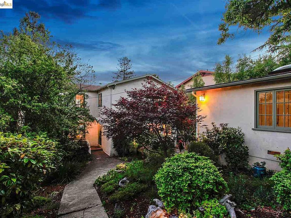 Bright and airy, updated 3 bedroom, 1.5 bath oasis set back on large lot in coveted Thousand Oaks neighborhood. Open floor plan oriented to expansive 2-bridge and SF views offers indoor-outdoor living at its finest. Watch the sun set over the Bay as you prepare dinner, then move to the deck for drinks and down to the wide stone terrace for al fresco dining, all overlooking a large lawn perfect for games and gardening. The updated eat-in kitchen features a center island, soapstone counters and a large pass through to the dining area. Hardwood floors and multi-lite windows throughout. Three large sunny bedrooms upstairs, with tile bath, laundry, and ample storage. An updated detached garage with skylights nestled in landscaped front garden is accessible from the back for use as an office, playroom or parking. Country village feel, within blocks of Young's Grocery, cafes, shops and the SF Express Bus, or take the footpaths to the Kensington Farmer's Market, Solano Ave shops and countless parks and playgrounds... A well-loved classic Berkeley home.