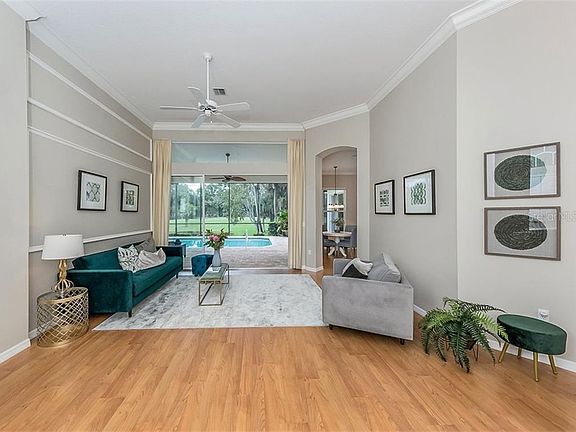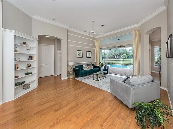 Fantastic Deal in Sawgrass. DON'T WAIT! This beautiful 3-bed plus DEN, 2.5-bath home features a POOL with splendid LAKE and GOLF course views from nearly all rooms in this popular J&J custom home. This spacious home features volume ceilings, crown molding, 8-ft doors, tray ceilings, plantation shutters, and decorator touches throughout. Split bedroom plan. Master bedroom has a large en-suite with two walk-in closets, dual vanities, sunken tub, walk-in Roman shower, and private water closet. A sprawling home that offers the best of both worlds with formal living and dining room areas in addition to the open eat-in kitchen and family room combo. The kitchen features stainless steel appliances and 30 in-raised panel cabinets. Bedrooms two and three are very spacious with high ceilings. Pool is complimented with a paver deck and poolside cabana bath. Newly painted and landscaped. LOW HOA and NO CDD. Sawgrass is an AMENITY-RICH Golf Course Community centrally located to restaurants, entertainment, and top-rated beaches.