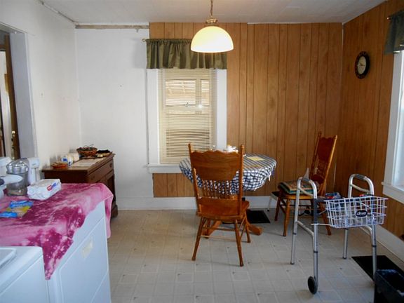 PRICED TO SELL...This charming home offers a lovely Oak kitchen with newer appliances that do stay with the home. There is a large living room with hardwood floors and convenient dining room. The dining room is in the process of a face lift and will be completed soon. The laundry is also located in the dining room along with a commode in the closet for convenience for the seller. However the laundry could be moved to back porch area or back into the basement. The chair lift on the stairs does not convey with the home. Upstairs has three bedrooms and full bathroom. There is ample closets throughout the home and the large back enclosed porch is great for summer enjoyment of just plain storage. The metal roof is in great condition. The vinyl siding and replacement windows are fairly new. The electrical is 200 amp circuit breakers and the furnace is a high efficiency gas furnace. The on demand hot water heater is a rental. This is a move in ready home with many updates and hardwood floors. A real bargain at $48,500.