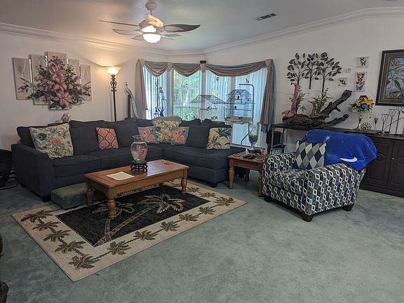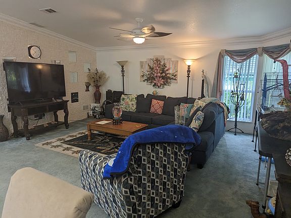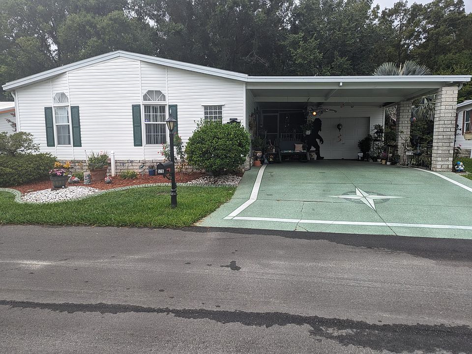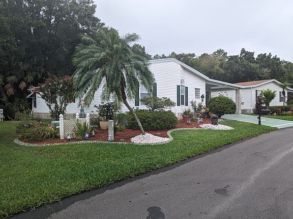 Located in an Active 55+ community! This GORGEOUS home is exactly that GORGEOUS ! Be sure you have this special home on your list of homes to see! The landscaping is spectacular with curbing around the gardens. Home comes partially furnished. Double wide driveway. Plenty of living space in this two bedroom plus den residence. Insulated windows throughout. Golf cart is included. Main bathroom has a nice sized jacuzzi. Front living room and huge lanai with mini-split climate control offers great view of the natural preserve behind the home along with a terrific rear patio area. Great place for your morning coffee or just entertaining. Home is extremely clean and pampered. Don t miss out on this rare offering someone is going to be calling it home.