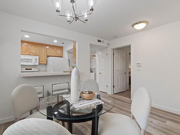 Convenient Los Gatos location! First floor end unit, light and bright with extra windows! New flooring and paint throughout, this two bedroom one bathroom unit is ready for you to call it home. Functional dining area offers a breakfast bar space. Large deck space offers a view of the pool and redwoods! Dual pane windows, central forced air, and in-unit washer and dryer. Gated parking garage with assigned parking space just below the unit. Amenities include a pool and spa, BBQ area, community room with kitchen, gym, and extra storage closet in garage. Close to dining and shopping options in both Downtown Los Gatos and Downtown Campbell, easy freeway access, and parks and Los Gatos Creek Trail. 55+ gated community.