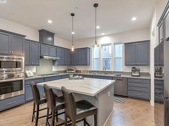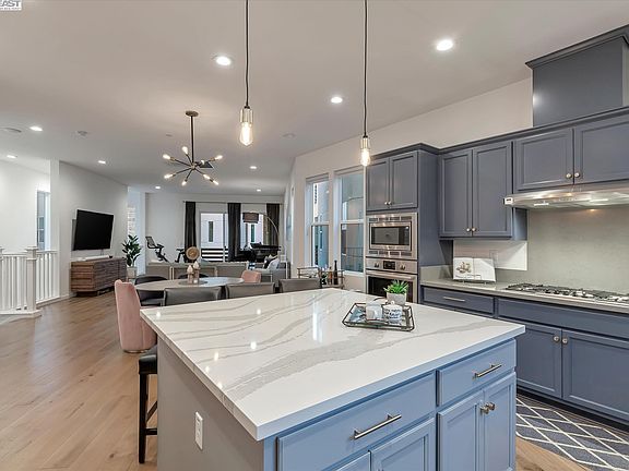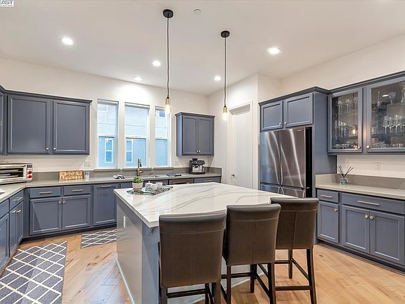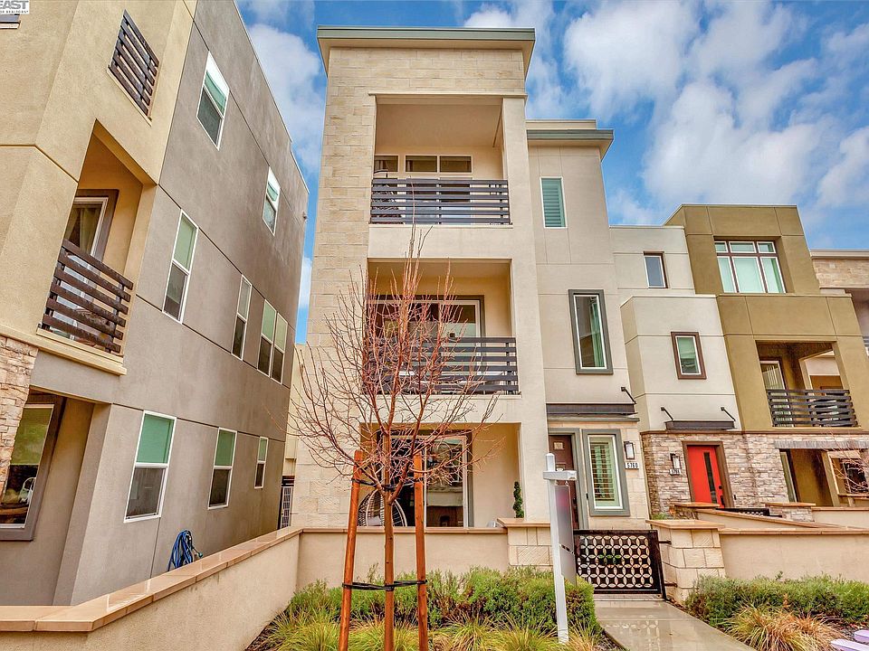 LOCATION, LOCATION, LOCATION! Marvelous 4 bed and 3.5 bath home in the Boulevard community offers 2541 sqft of living space, affluence amenities, close distance to shopping area and easy access to interstate 580 and 680. As you enter the house, enjoy the immense ceilings, large windows, engineered hardwood floors, and a good size master suite with sliding glass door connecting to the patio. Excellent for guest or office space! The upstairs brings a generous living area linked to an expanded and fascinating gourmet kitchen with new light fixtures, touch sensor faucet, stainless steel appliances, large island, extensive pantry and plenty of natural light. Perfect for entertaining! Two decent size bedrooms, split bathroom, laundry room and splendid master suite with a balcony are on the upper level. Other upgrades include solar panels, painted cabinets throughout the house, frameless shower doors, recessed lights in the master suite, light fixtures and hardware throughout the house, doorbell with google nest, lounge curtain, EV wire in garage and so much more! In addition, the community's area of 14500 sqft include lap pool, gym facility, club house, BBQ area, parks, game rooms, and fire pit. A place to call HOME! OH Friday 3/3 from 10am-1pm, Sat 3/4 and Sun 3/5 from 1-4pm.