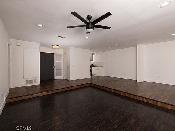A gated front courtyard works double duty: safe play zone for toddlers or pets by day, twinkle-light retreat for date night once the kids are down. Step inside to a bright, open layout trimmed in fresh white paint, recessed lighting, and durable luxury-vinyl plank floors.