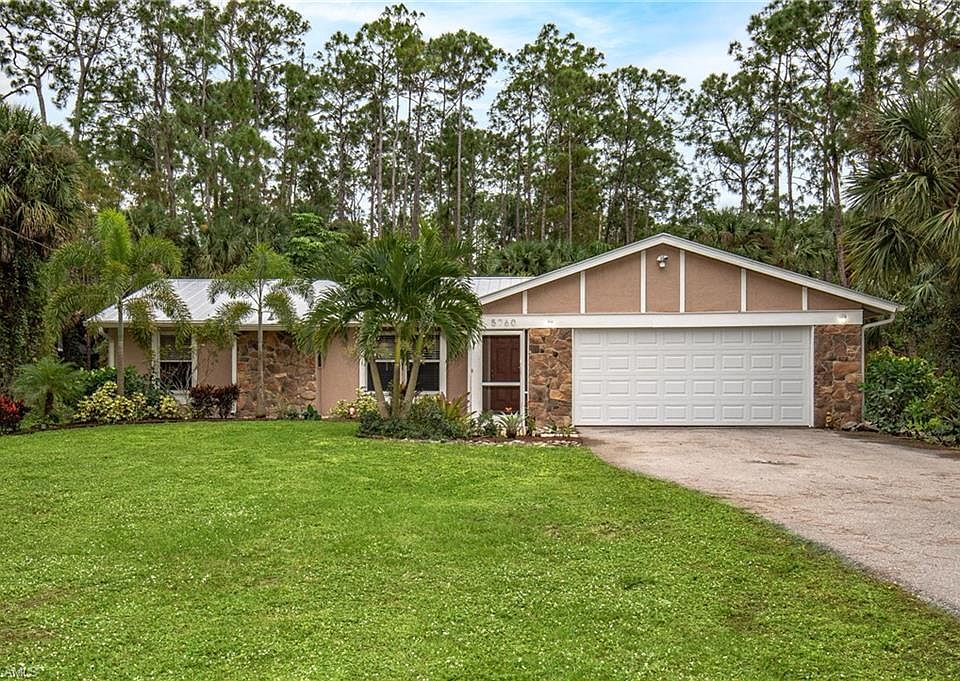 Non-gated pool home in Oakes Estates. This 3/2 home is not only in a sought after school district; shops and 1-75 are nearby and the 1.14 acres provides plenty of room for privacy. The house has been consistently rented @ 30K per year, if income is a primary driver. Stunning grounds and backyard - your own private escape in the heart of North Naples. Watching the stars at night is AMAZING - super low light pollution. The house inside has a warm cottage feel with contemporary bathrooms and a huge kitchen area with plenty of countertops and a granite surfaced island to match that is on wheels , and can equally serve as a sideboard in the dining room alcove.