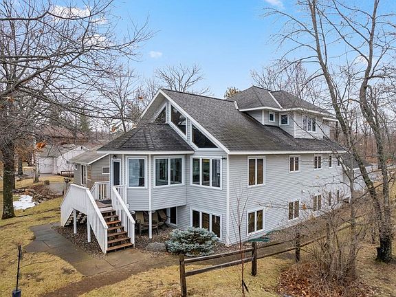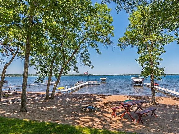This beautiful home by Nor-Son Custom Builders on Round Lake features a gorgeous sandy beach and limitless opportunities for boating, relaxation, recreation, and fishing! Boat access to the entire Gull Chain of Lakes provides opportunities to explore and boat to your favorite restaurants, fishing, swimming, and recreation spots! Relax in the delightful 4 season porch overlooking the sandy beach and clear water. The home features 6 BR, 5 BTH, floor to ceiling lake-facing windows with vaulted ceiling for stunning views! Gourmet kitchen with SS appliances, island w/granite & gas cooktop, and double oven! Open floor plan and beautiful custom wood finishes. LR with gas FP, Lower-level family room with large windows and custom built-ins! This home could be a wonderful year-round home, vacation home, or investment property. Excellent rental history. Home can come fully furnished, with dock and lake items. Move in and start enjoying!