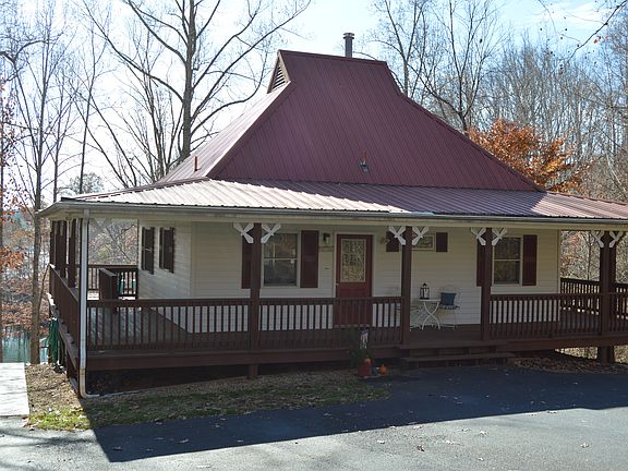 LEAVE YOUR WORRIES BEHIND WITH THIS WATERFRONT HOME ON BEAUTIFUL SMITH MOUNTAIN LAKE! 1.94 acres of privacy & 173 feet of shoreline on a deep water cove (R32A)! Just 2 hr. 45 min. drive from Richmond! One hr. 15 minutes to Virginia Tech! Wooded country setting! This adorable red tin roof cottage is 1800 sq. ft. & has 3 bedrooms (2 have lake views!), 2 full bathrooms, & a bonus finished attic which is perfect as a bunk room for the kids! WRAP AROUND PORCH & VIEWS GALORE! Inside there's new bamboo flooring, new HVAC 2019, updated bathrooms w/new tile shower, vanities, & fixtures. Living room boosts large windows w/ water views, built in shelves, & new paint. The kitchen was next on the seller's remodel list so there's bamboo flooring that can be installed. Propane fueled stove. Kitchen & dining area also have lake views! Large laundry room in basement w/extra storage. French doors in basement hallway open to an expansive stamped concrete PATIO overlooking the water! Plenty of space for the fire pit & hot tub! HUGE COVERED DOCK w/ new boat lift, floating dock, jet ski lift, boathouse w/ 2 bar windows! Your own sandy BEACH! Barn w/ extra storage! PAVED driveway to house AND to dock!