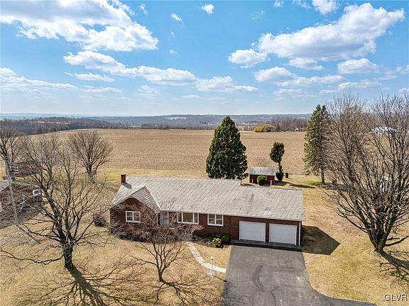 Discover the timeless charm of this 3-bedroom, 1.5-bathroom ranch home, meticulously built by hand in the 1950's and lovingly maintained by its original owner. Situated on just over half an acre, this 1,242 sq. ft. brick home offers a rare blend of craftsmanship and comfort.Step inside to gorgeous hardwood floors and handcrafted wooden baseboard covers, showcasing the home's attention to detail. The spacious living room flows into an attached dining area, both bathed in natural light. A full basement and attic provide plenty of storage, while the two-car garage adds extra convenience. The flat backyard is a true highlight, backing up to a peaceful cornfield with breathtaking mountain views—a perfect setting for relaxation or entertaining. The home is equipped with central AC and oil heat, both well-maintained and in excellent working condition. Located in the Pen Argyl Area School District, this home offers both privacy and accessibility, with schools, parks, and local amenities just minutes away.