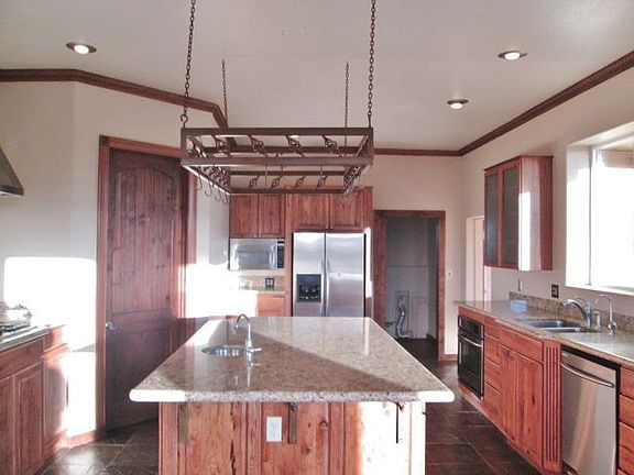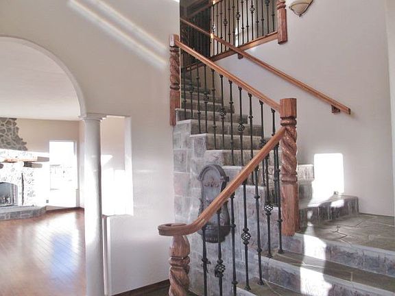 Stunning home with views of Pikes Peak and the Greenhorns on over 35 acres with Greenhorn Creek meandering through property. Beautiful custom home for your delight. Slate tile and hardwood floors on main level. Large master suite with walk-in shower, jetted tub, double sinks and ample walk in closet. Stunning stone stairway to upstairs. Granite countertops, custom cabinets and upgraded appliances in large open kitchen. So many nice features just hard to tell you about all. Set up for animals with 4 stall barn, concrete milking barn and chicken coop.