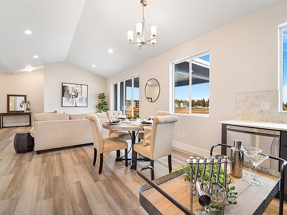 Experience modern and functional living in the Stockton by Azure Northwest Homes. This 3-bedroom, 2-bathroom, exudes contemporary elegance and comfort throughout. Enter the luminous open-plan living area and gaze out your double slider to see the covered back patio, which is ideal for hosting guests and unwinding in solitude. Inside, tall, vaulted ceilings in the great room create an expansive atmosphere, flooded with natural light from oversized windows. The kitchen features beautiful countertops, shaker door cabinets, stainless steel appliances, and a functional pantry. Step outside to a professionally landscaped front yard, enhancing the home’s unique exterior. The Stockton’s three-car garage provides plenty of parking and ample storage. Elevate your lifestyle with a blend of sophistication and practicality.