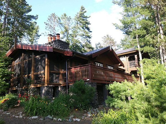 One of the most unique log homes in Northern Minnesota. Located on Wynne Lake in Voyageurs Retreat. This is a one of a kind home. The wooded property includes 2 lots. Built from logs imported from Estonia by Estonia craftsmen on site. Beautiful sand beach. 460 feet average of shoreline. Three bedrooms and sleeping for 13 total including basement bunks and sleep house. Full log sleeping house for those extra guests. Log triple garage with additional room. Main floor and basement have in floor heat. Reclaimed hardwood floors on the main level. Bathrooms are slate flooring and tiles. Upstairs bath has tile imported from Turkey and in floor heat. Stone fireplaces in vaulted family room and screen porch. Stone and clay wood burning pizza oven imported from Italy. Large deck on lakeside. Each upstairs bedroom includes a balcony deck. Basement is fully finished with tile floor and large Finish Sauna. Basement laundry with front loading appliances. Kitchen has top of the line appliances and large center island with hand carved legs. Many antique one of a kind lighting from English country homes. Mesabi bike trail with miles and miles of paved trails is a few blocks away. Giants Ridge Ski and Golf is across the lake. World class cross country skiing and downhill is less than a mile away. Two of Minnesota’s premier golf courses , The Legend and The Quarry are a short distance also. Maintained hiking trails throughout the development. Handcrafted Norwegian furniture will stay with the home. It includes five beds, large entryway bench and family dining table. Hundreds of trees on the two adjoining lots. Will pay buy agent fee.
