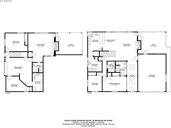Spacious, versatile, and ready for multigenerational living! This well-maintained 4 bed, 3 bath home offers nearly 2,900 sq ft of functional space, nestled on a private, tree-lined lot just minutes from town. The flexible floor plan features a full lower-level living area complete with separate entrance, kitchen, bedroom, bathroom, living room with fireplace, and bonus space — ideal for extended family, guests, or rental potential.Upstairs, enjoy vaulted ceilings, an open-concept kitchen with ample counter space, cozy living area with fireplace, and access to a covered deck overlooking the beautifully landscaped yard. The lower level walks out to a covered patio, perfect for year-round entertaining. Outside, you’ll find a 30x50 detached shop with power — perfect for hobbies, storage, or a home business. Room for RV/boat parking. Peaceful setting with usable yard space, perfect for gardening or raising animals. A rare opportunity for those seeking privacy, functionality, and room to grow — all in a desirable Scappoose location.